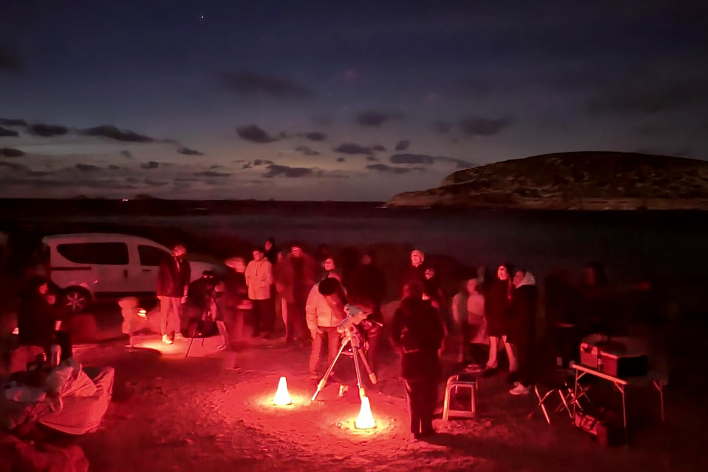 El pasado sábado, 29 de noviembre, se celebró en Platges de Comte una nueva jornada de la iniciativa ‘Tresors de sa Badia’, que organiza Salvem sa Badia de Portmany y que está orientada tanto a socios, que pueden disfrutarla de manera gratuita, como a particulares en general. Esta actividad familiar al aire libre, titulada ‘Luna y Posidonia’, consistió en una observación astronómica guiada con telescopio y comenzó sobre las 18 horas, bajo la dirección de la bióloga y monitora Starlight Teresa Marí.
